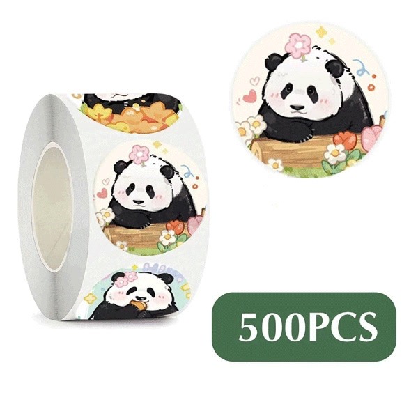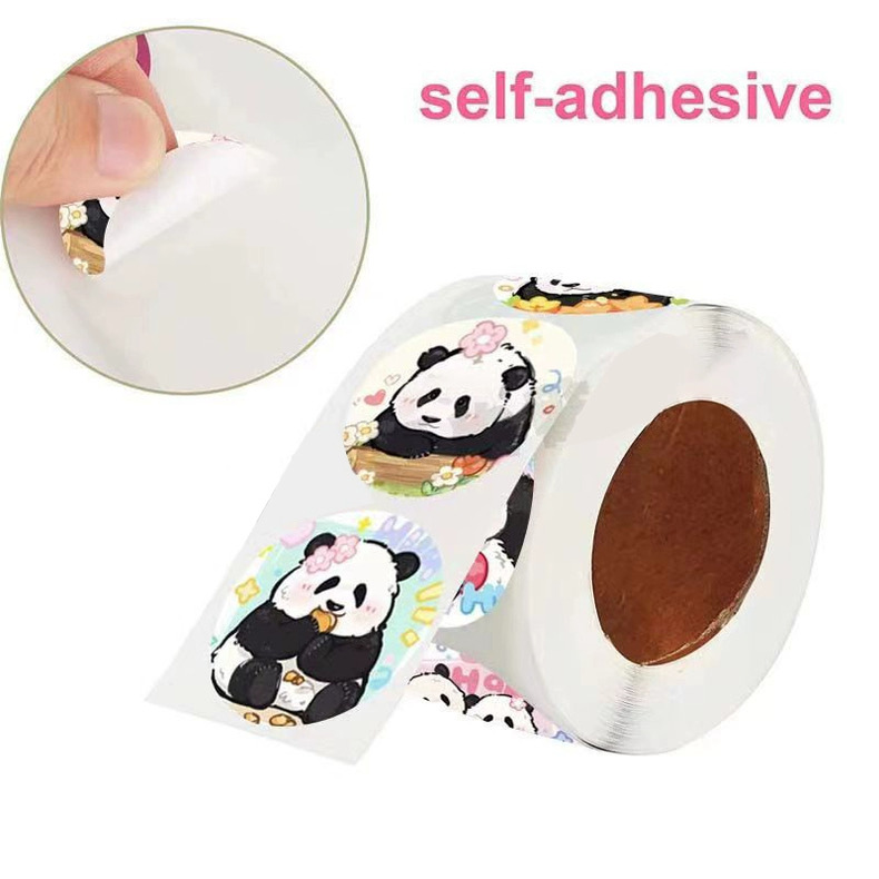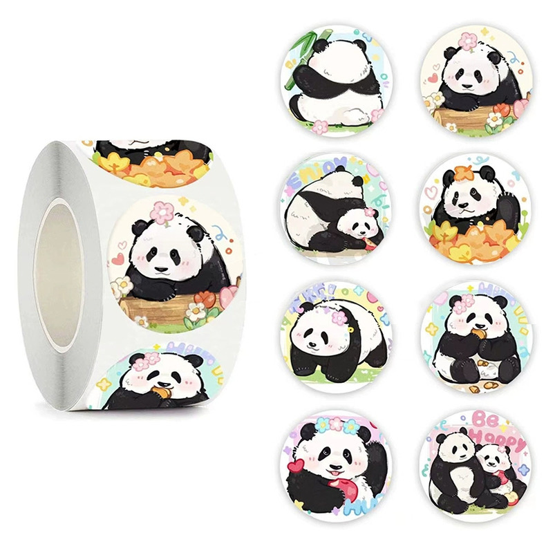 花花熊猫贴纸可爱卡通贴画贴贴国宝动物图案自粘粘贴学生儿童少女书本封口贴小红书校园彩色创意个性礼物玩具
